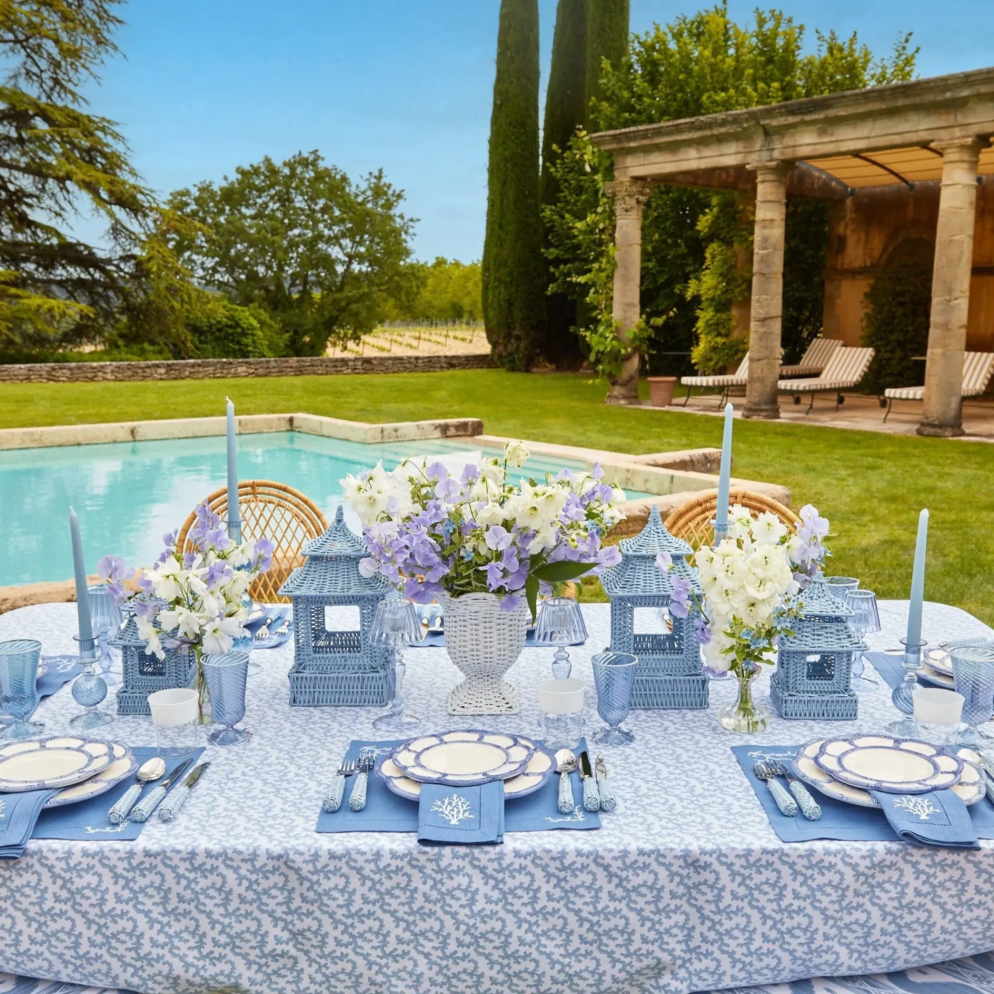 This Set Of Blue Petal Bamboo Ceramic Starter Plates Is Elegantly Hand Painted In Italy. Its Floral Bamboo Design Creates A Beautiful Symmetry On Any Table.Pair This Pretty China Plate With Our White Rattan Charger Plates, Alathea Sky Blue Linen Placemats And Lilac Blossom Tablecloth. Set:X4 Blue Petal Bamboo Dinner Plates (22Cm Diameter)Care Instructions: Microwave & Dishwasher Safe
