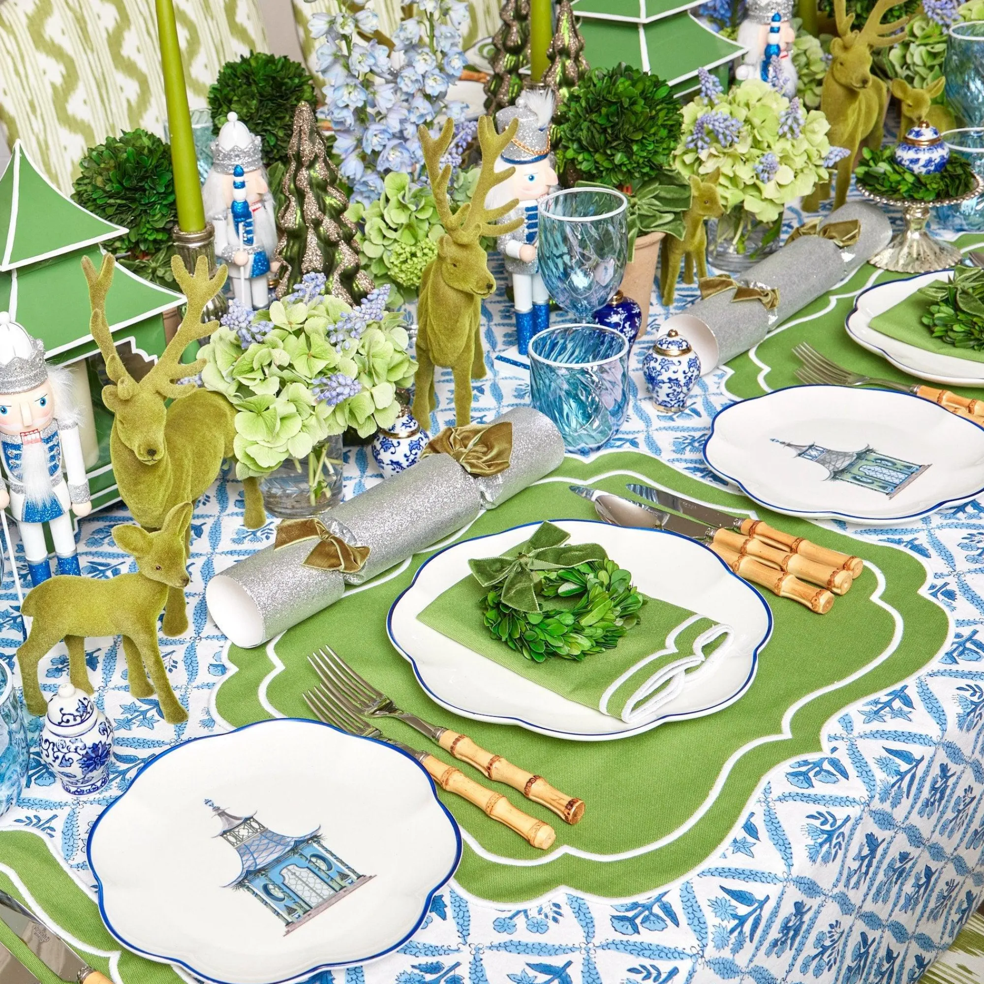 With A Clean Blue Hand Painted Rim, Our Exclusive China Scalloped Pagoda Starter Plate Was Designed By Alice’s Mother Serena.Featuring A Classic Chinoiserie Design With Two Tiered Green Chinese Pagoda, This Plate Was Finished In Stoke On Trent, The Traditional Home Of English Pottery.This Plate Is Designed To Accompany The Blue Pagoda Dinner Plate, Blue Coral Tablecloth & Meredith Woven Placemats.Size: 23Cm