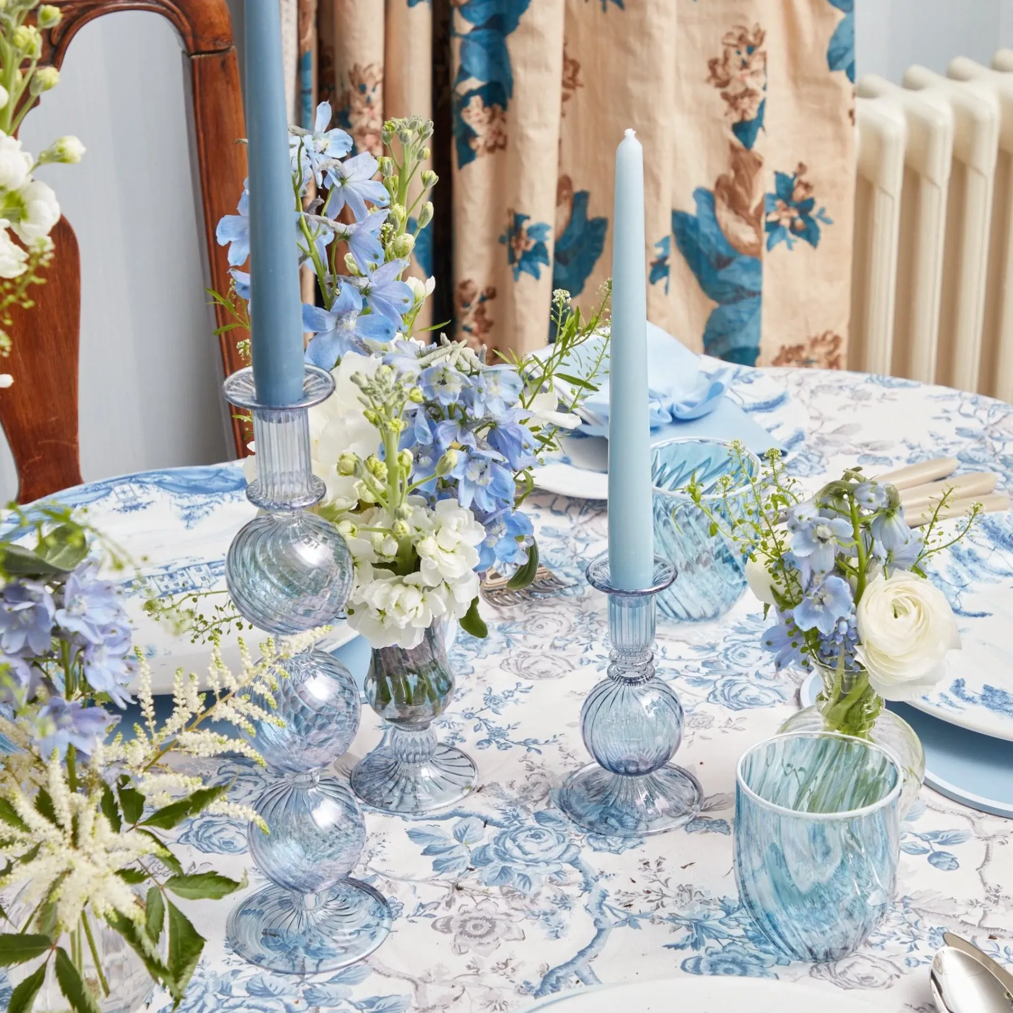 This Delightful Pair Of Hand Blown Madeline Candle Holders In Refined Azur Blue Will Enhance Any Dining Or Kitchen Table. Pair Them With Our Blue Chintz Tablecloth, Stella Blue Linen And Appleshaw Manor Dinner Plates.Size: 14Cm High X 8Cm Widedue To Their Charming Handblown Nature, The Candleholders Can Differ Slightly In Size And Shape.Care Instructions: Hand Wash Using Cold Water.