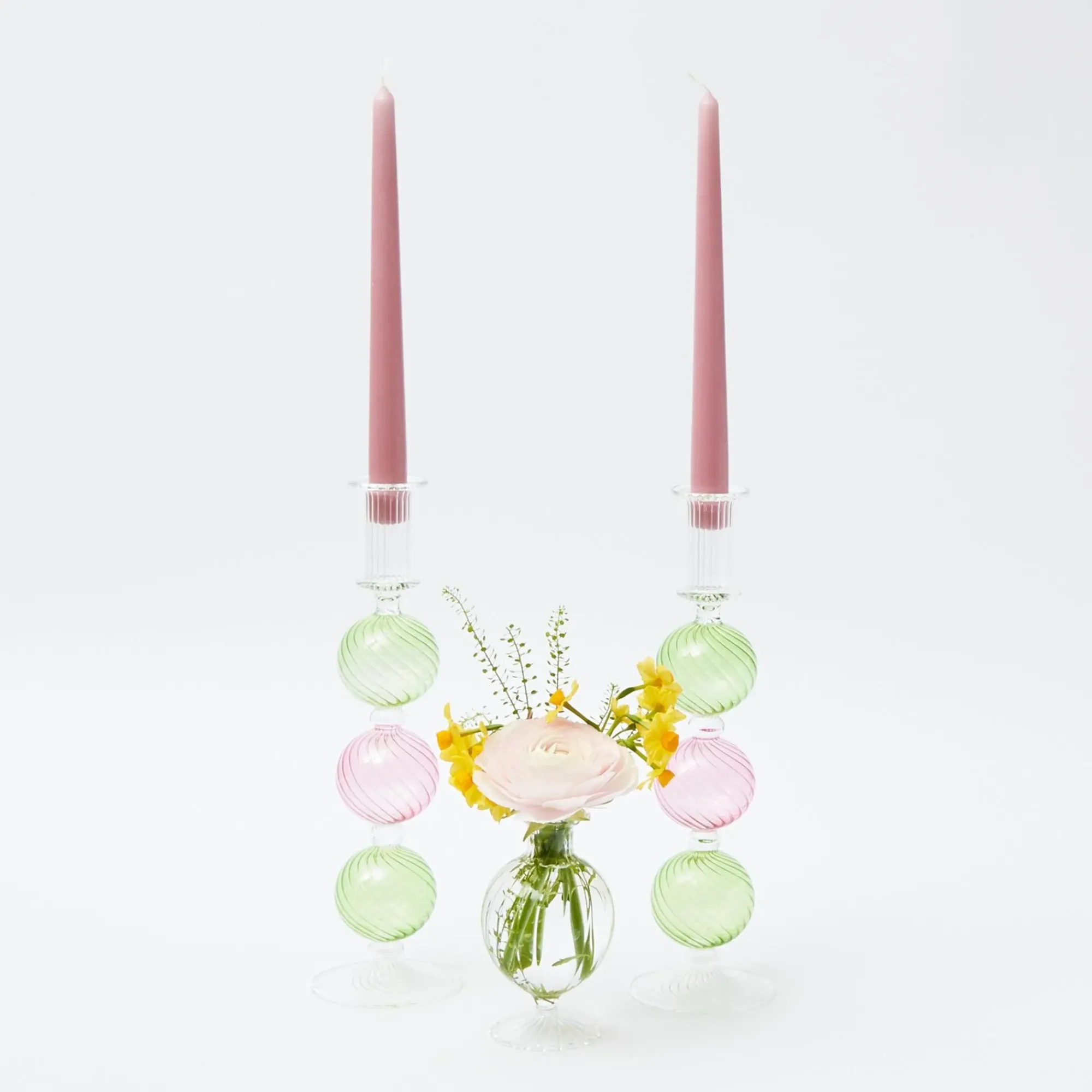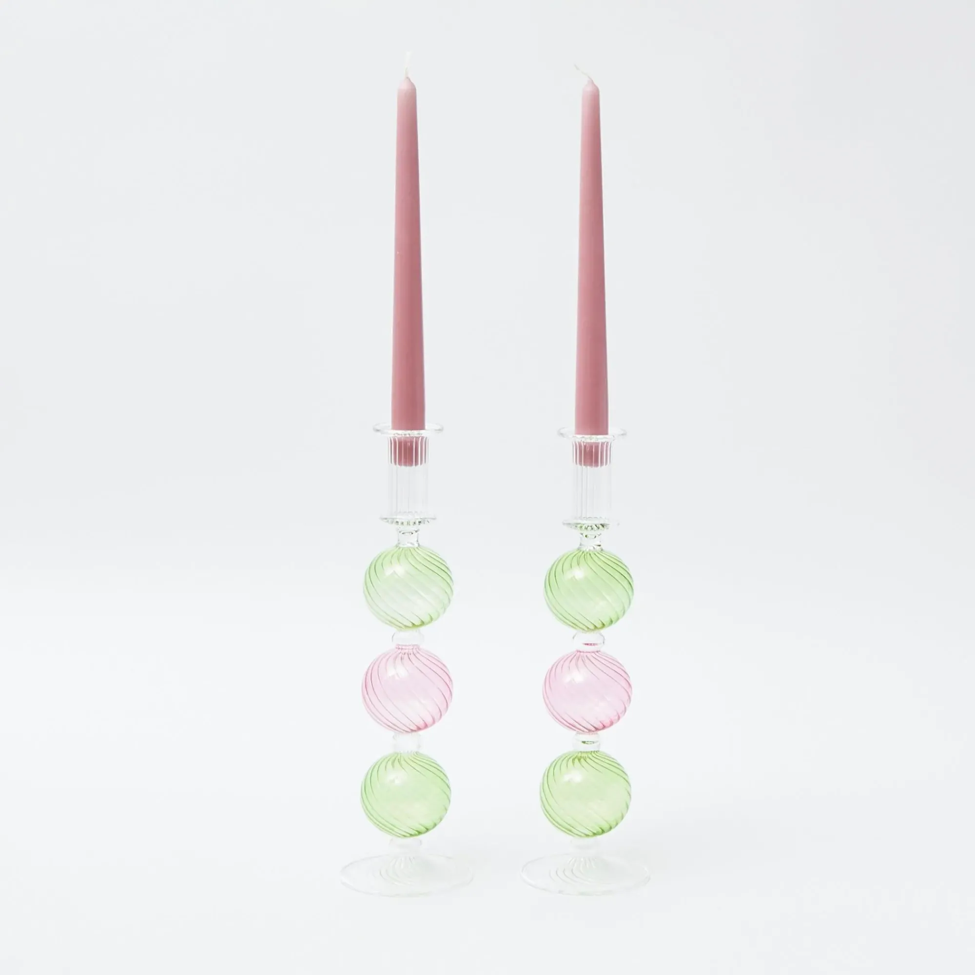 Pink & Green Camille Candle Holder (Pair)|Mrs. Alice Discount