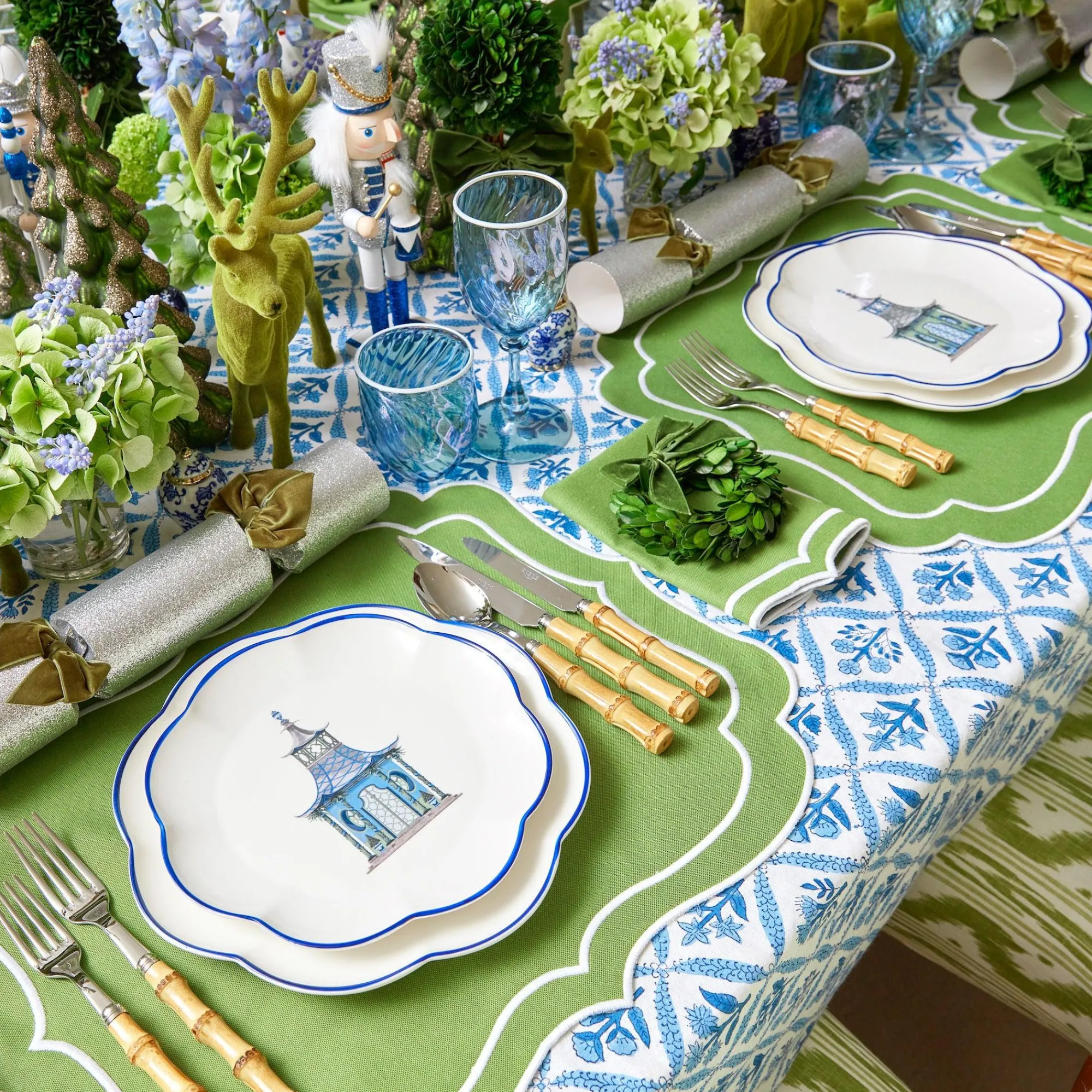 With A Clean Blue Hand Painted Rim, Our Set Of Exclusive Chinoiserie Scalloped Pagoda Dinner Plates Was Designed By Alice’s Mother Serena.Featuring A Classic Three Tiered Chinese Pagoda, These Plates Was Finished In Stoke On Trent, The Traditional Home Of English Pottery.This Set Is Designed To Accompany Our Pagoda Starter Plates, Blue Coral Tablecloth & Serena Bamboo Cutlery. Size: 23Cm