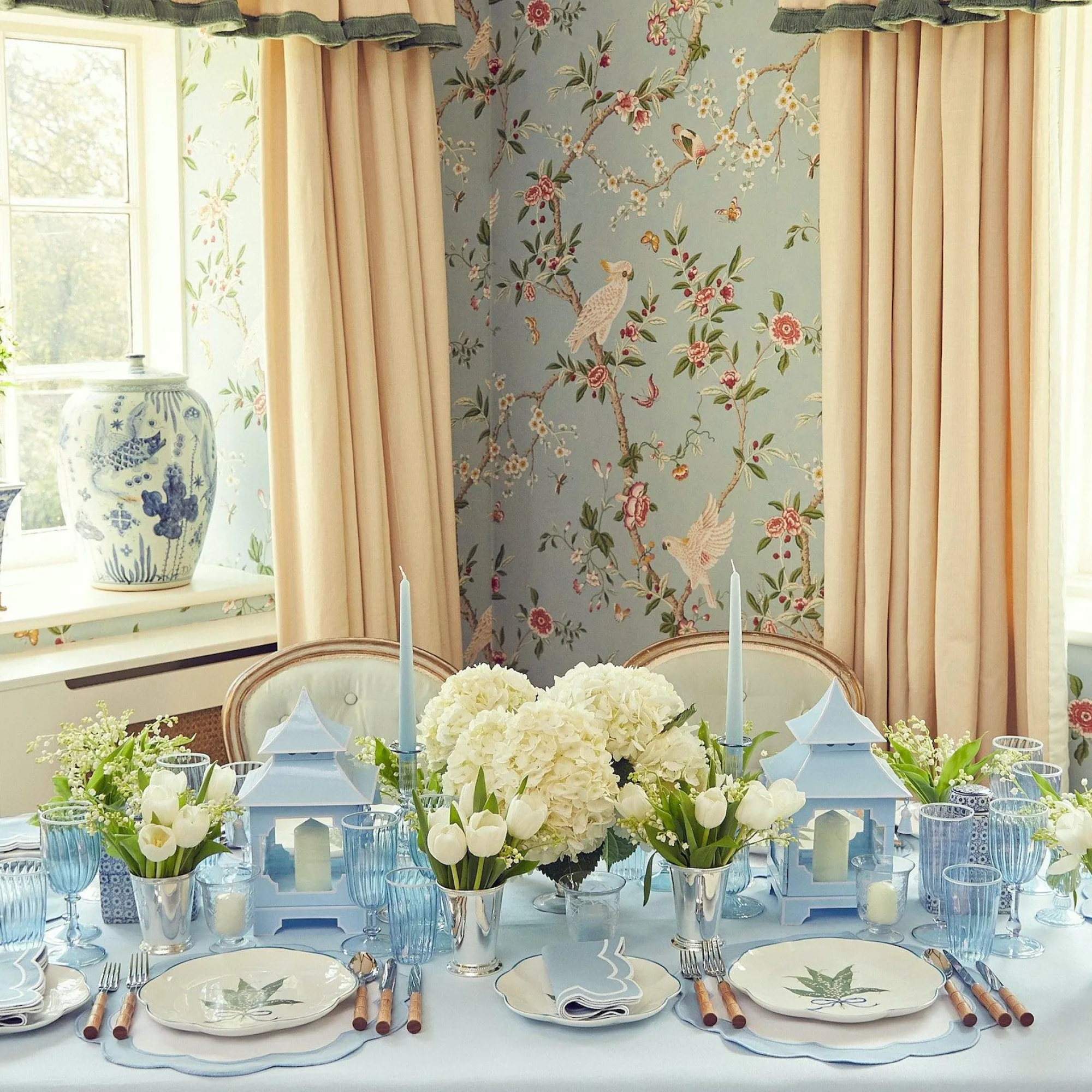 Our Classic Square Flower Print Ginger Jars Add A Sophisticated Touch To Your Table. Versatile And Elegant These Blue And White Lidded China Jars Can Be Used As A Vase Around The Home Or A Charming Table Centre Piece. Made Popular In The Country Houses Of 18Th Century England, These Jars Were Originally Used In Medieval China As A Storage For Spices Like Salt And Ginger.Pair With Our Serena Blue Applique Linen, Chinoiserie Pagoda And Blue Petal Bamboo Dinner Plates Size: 17Cm High X 12Cm Wide